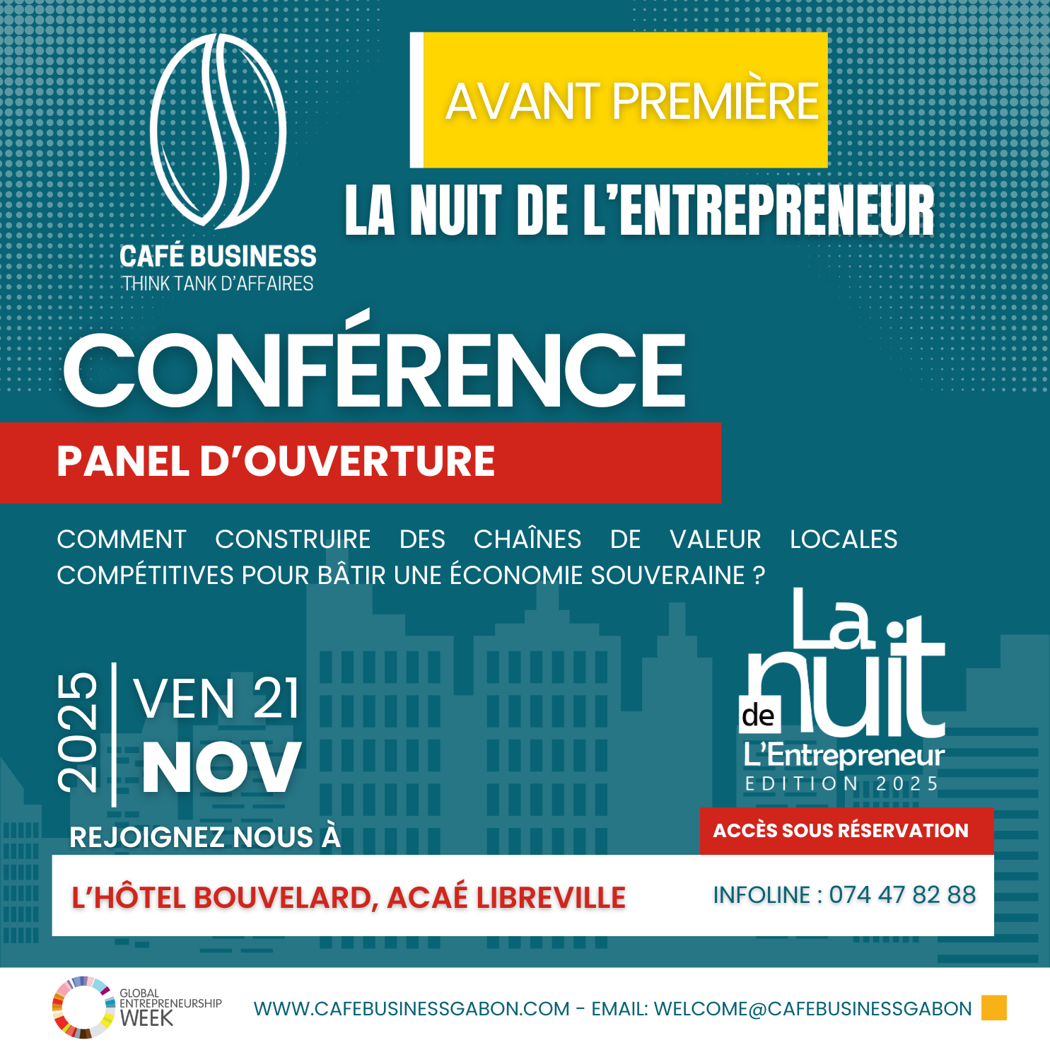Cet événement est porté par le Think Tank Café Business, un club d’affaires fondé en 2020 dans le but de stimuler la réflexion et l'action autour des questions économiques et entrepreneuriales au Gabon.